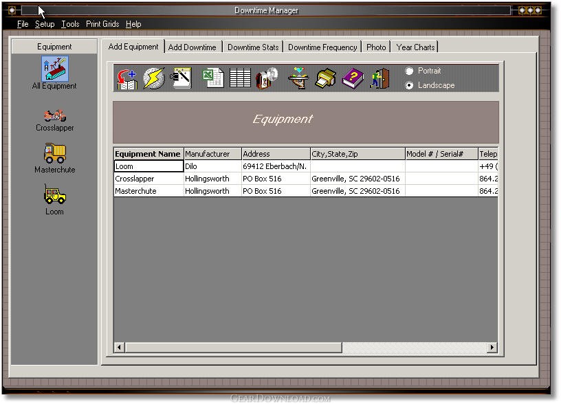 DownTime Manager keeps track of your equipment downtime.Use it for industry,fleet maintenance computers,etc.Easily track downtime and find the problems areas with equipment.Plots downtime by month,type of downtime