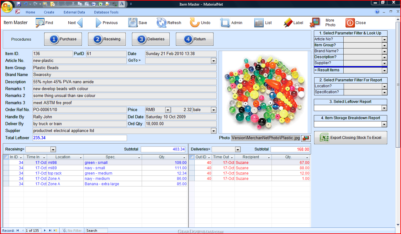 Index >> Business >> Inventory & Barcoding >> MaterialNet