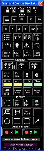 Office Command Console is a must-have addin for all Word users. This amazing tool is loaded with one-click smart commands for changing views, formatting text, creating tables, highlighting text, setting bookmarks, inserting a canvas, inserting callouts and shapes, adjusting borders, brightness, and contrast, and even recording and playing back your own macros.