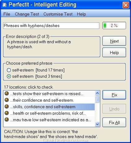 Click the file link below to download PerfectIt 1.1 (perfectitsetup.exe) from software publisher's official website. You can right-click the file link and select "Save link as..." menu to download this file to a specified directory on your computer.