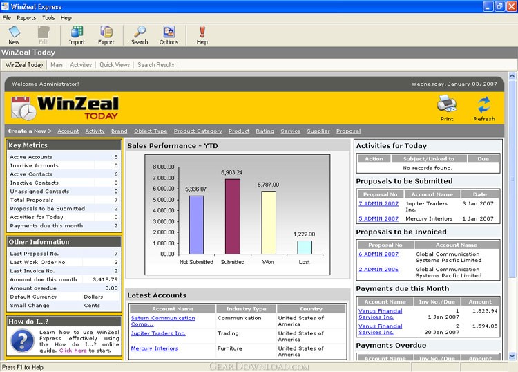 WinZeal Express is primarily designed and targeted at the small business segment. It comes with comprehensive account management, contact management, proposal/quotation management, invoice management and many other outstanding features. It integrates tightly with Microsoft Office (Word, Excel and Outlook).