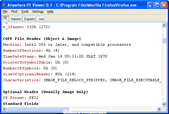 Index >> Development >> Debugging >> Anywhere PE Viewer