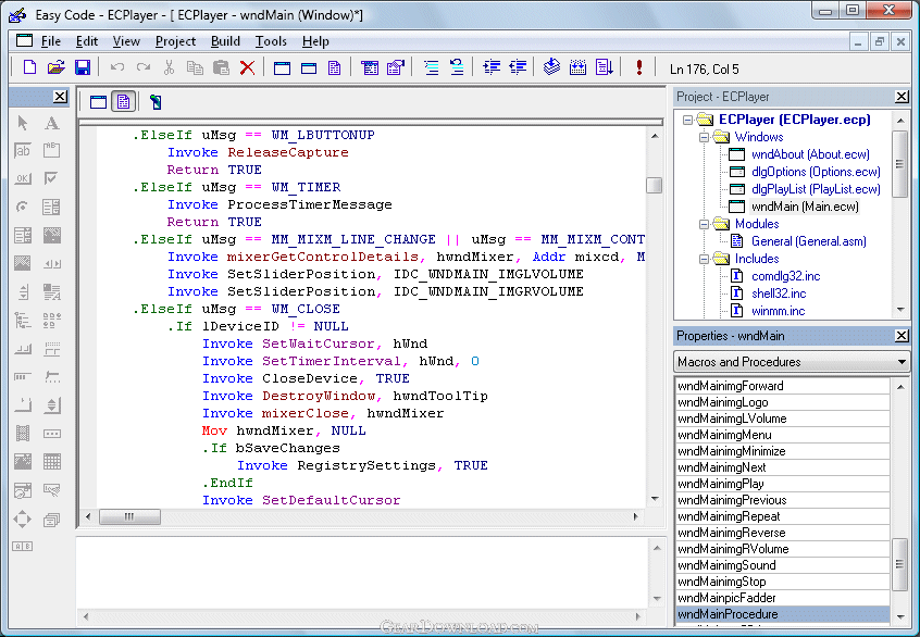 Easy Code Masm - visual assembly programming environment made to build 32-bit Windows application