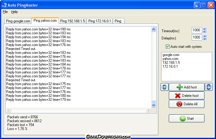 AgataSoft Auto PingMaster, will automate the pinging process so that you achieve assured smooth functioning of your network activity.