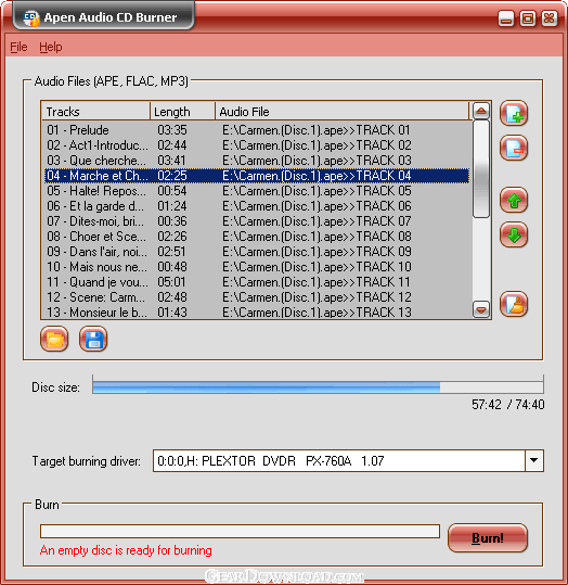 Click the file link below to download Apen Audio CD Burner 1.12 (acdburner_setup.exe) from software publisher's official website. You can right-click the file link and select "Save link as..." menu to download this file to a specified directory on your computer.