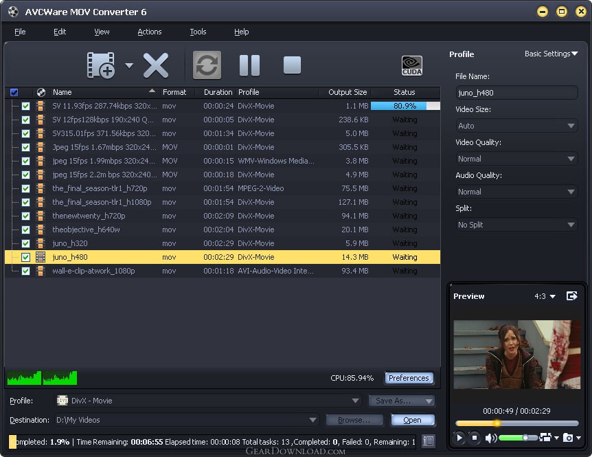 Click the file link below to download AVCWare MOV Converter 6.0.9.0826 (avc-mov-converter6.exe) from software publisher's official website. You can right-click the file link and select "Save link as..." menu to download this file to a specified directory on your computer.