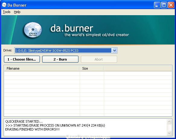 Click the file link below to download daBurner 1.01 (daburner.zip) from software publisher's official website. You can right-click the file link and select "Save link as..." menu to download this file to a specified directory on your computer.