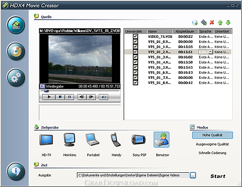 The HDX4 movie creator provides you with a complete solution for creating and playing digital video on your PC. Beside a converting solution to create movies for various devices like mobile phones (3GP, 3GPP2 or SD videos), Playstation PSP, the new iPod, portable devices, or MPEG4 compatible DVD player, it contains the full versions of the HDX4 codec, a player for common audio and video files and container formats like MP4 or 3GP. 100% kompatible with DivX and XviD.