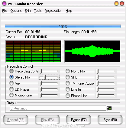 MP3 Audio Recorder - Record sound from microphone, line-in and streaming audio from the Internet.
