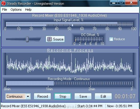 Steady Recorder is a digital audio recorder for Windows. It allows you to record, play, edit and save any audio from your sound card. This is the suitable software if you do not know when an interesting song will begin. You can choose the loop mode to keep the last few minutes of recording or the continuous mode for recording during few hours. The program always monitors signals from the active audio source in Windows XP or Vista that makes it easy to adjust your audio device. Clipping and DC offset detection and reduction helps you to enhance recording quality with any audio recording device. You can cut, delete, fade in/out, copy, amplify and normalize the recorded waveform with a built-in audio editor and save it into MP3 and WAV format.