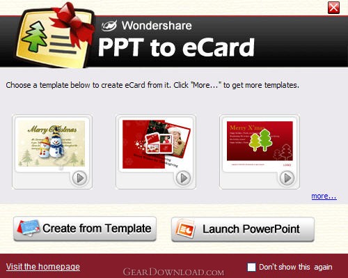 Wondershare PPT to eCard enables users to create animated eCard for online greeting within PowerPoint. You can customize your eCard with personal photos, background music and animations. And then you may send it by E-mail instantly. PPT to eCard has preset PowerPoint templates for you and you can create your own new design. Then iinsert pictures, sounds and voiceover, add transitions, animations and other effects. You can publish your eCard as one solid SWF file, an executable file, or auto-run CD files.After conversion, add receipients and send your eCard now.