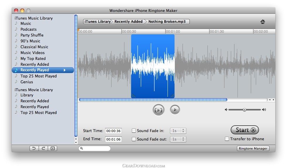 Index >> Audio & Multimedia >> iPod/PSP/Zune Converters >> Wondershare iPhone Ringtone Maker forMac >> Download