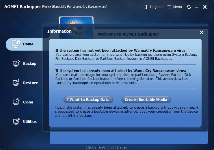 Index >> System Utilities >> Backup & Restore >> AOMEI Backupper Free For WNCRY Ransomware