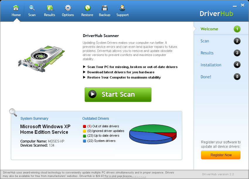 DriverHub is the answer to a common problem: how to boost efficiency of computer hardware at the same time as software. The benefits of up-to-date drivers cannot be understated. Not only do driver updates correct bugs and discrepancies, but they maximize performance. The problem is that devices are made by lots of companies, so keeping drivers up-to-date means trying to find the right driver for a given operating system. Windows can help, but it still only looks for new drivers when prompted - when there is an error. This is where DriverHub comes in. It benefits users in three ways. One is that it does not just get some version of an update, it gets the latest version. By linking to a constantly refreshing datacenter, DriverHub can cite specs on thousands of new drivers as soon as they come out. Since the datacenter is cloud-based, it is not reliant on routine web-crawls but is refreshed dynamically, continually feeding in new driver profiles to replace outdated ones. The second is that DriverHub makes installing drivers easy. If a user can find a driver on the web, there is always a question of getting the right one. Once downloaded, the issue is then how to install it. DriverHub automates both processes. It creates a customized profile of a PC, verifying operating system and technical specs so it retrieves the right driver every time. The third way DriverHub benefits the user is by scheduling routine scans of device and system drivers. On a given computer there are usually upwards of 75 to 100 drivers installed. The only way to keep everything current is to get updates as soon as they become available. DriverHub makes that possible, letting users schedule monthly, weekly or even daily scans. This keeps tabs on driver status, alerting the user anytime a manufacturer has released a new version. All together, these features translate to tangible boosts in performance, including faster operating speeds, fewer errors, and greater stability for the whole computer.