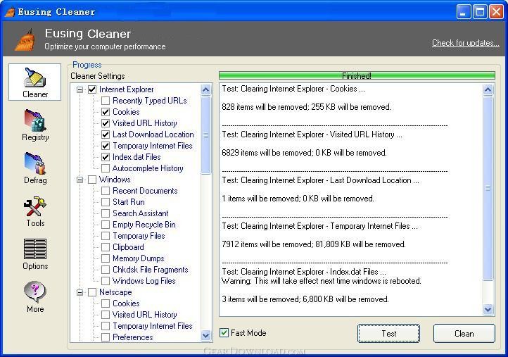 Eusing Cleaner - System tools like registry cleaner, disk cleaner, and internet track eraser.