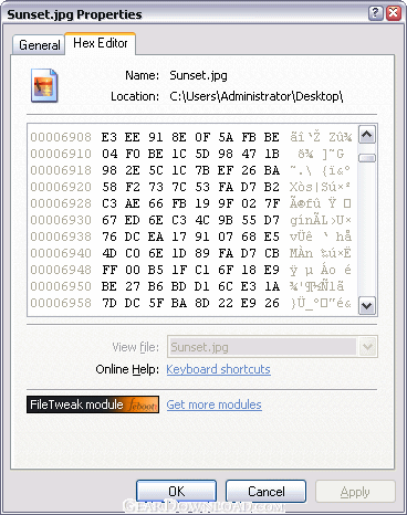 Click the file link below to download Febooti fileTweak Hex Editor 3.0 (ftweak-hex.exe) from software publisher's official website. You can right-click the file link and select "Save link as..." menu to download this file to a specified directory on your computer.