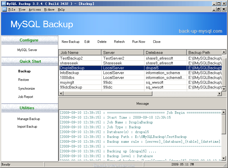MySQL Backup is a professional backup and restore application for MySQL . It creates 7 zip ,zip backup for local or remote MySQL Server's databases easily and quickly . The user-friendly and professional wizard enables you just point and click with your mouse to do backup / restore job , without writing any sql script or complicated command line . It supports data compression and encryption . It is really a must-have tool for MySQL DBA.
