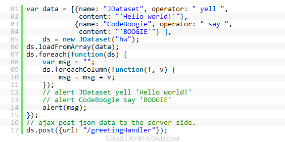 2. Ajax load/post xml/JSON between server and browser JDataset help you write AJAX code in a simple way. Load data from JSON or XML format. Through configurating the ajaxParam parameter in loadFromJSON/loadFromXML/post function, we can set the synchronize or asynchronize, HTTP request type, and onSend/onError/onSuccess/onCustom/onProcess event handle.